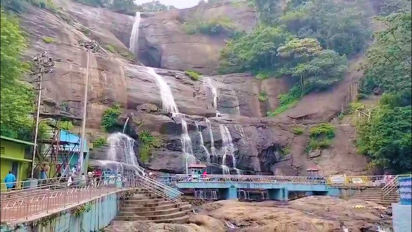 மெயின் அருவி நடை பாலத்தில் வெள்ளம் | Kutralam Main Falls | 17.10.2025, 5.30 PM | Kutralam...