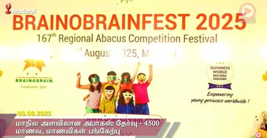 A state-level abacus competition was held on behalf of a private academy at the Tamukkam ground in Madurai (Braino Brain Abacus).