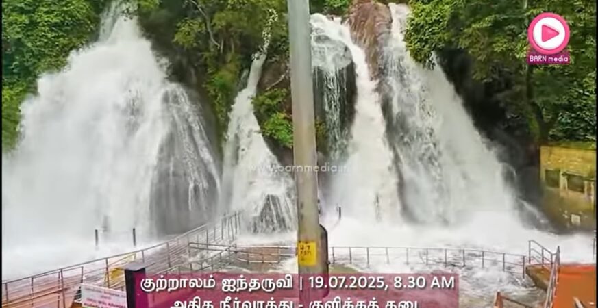 Five Falls | 19.07.2025, 8.30 AM | தென்காசி மாவட்டம் குற்றாலம் ஐந்தருவி வீடியோ | Kutralam Season | Kutralam Live.