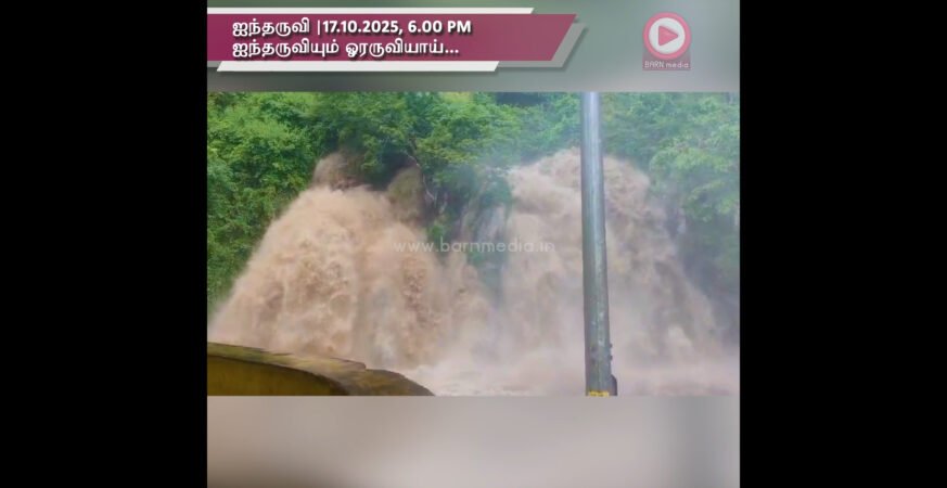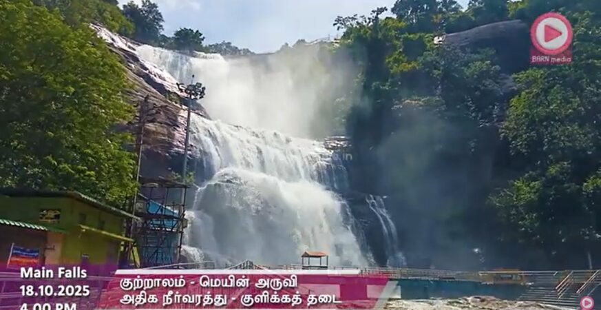 ஐந்தருவியும் ஓரருவியாய் | Kutralam Five Falls | 17.10.2025, 6.00 PM | குற்றாலம் ஐந்தருவி வெள்ளம் | Kutralam Season | Kutralam Live.
