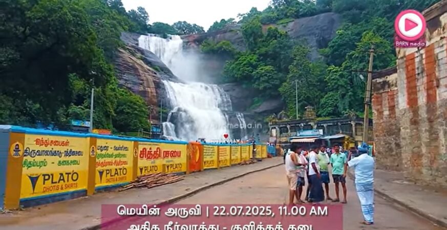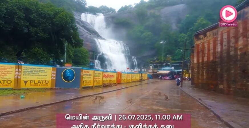 Night in Main Falls | 27.07.2025, 9.00 PM | இரவில் குற்றாலம் மெயின் அருவி வீடியோ | Kutralam Season | Kutralam Live.