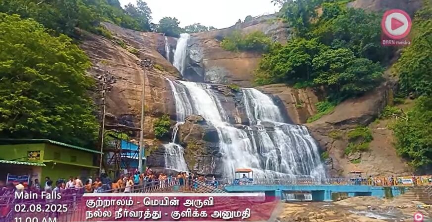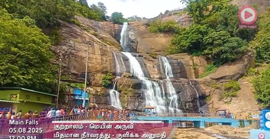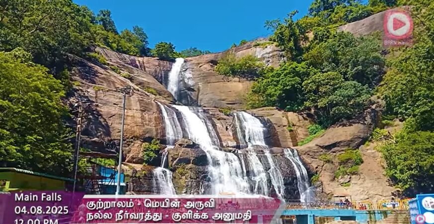 Main Falls | 05.08.2025, 12.00 PM | தென்காசி மாவட்டம் குற்றாலம் மெயின் அருவி வீடியோ | Kutralam Season | Kutralam Live.
