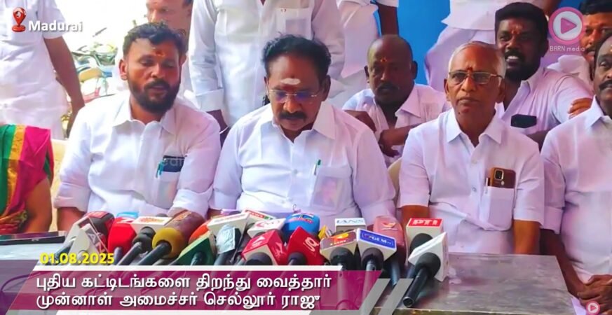 மதுரை விளாங்குடி பகுதியில் நியாய விலை கடை, ஆழ்துளை போர்வெல், சிசிடிவி கேமரா, புதிய மாமன்ற அலுவலகம் குடிநீர் சுத்திகரிப்பு நிலையம் என மொத்தம் ரூ.40 லட்சம் மதிப்பீட்டில் கட்டி முடிக்கப்பட்ட பணிகளை முன்னாள் அமைச்சர் செல்லூர் ராஜு மக்கள் பயன்பாட்டிற்கு திறந்து வைத்தார்